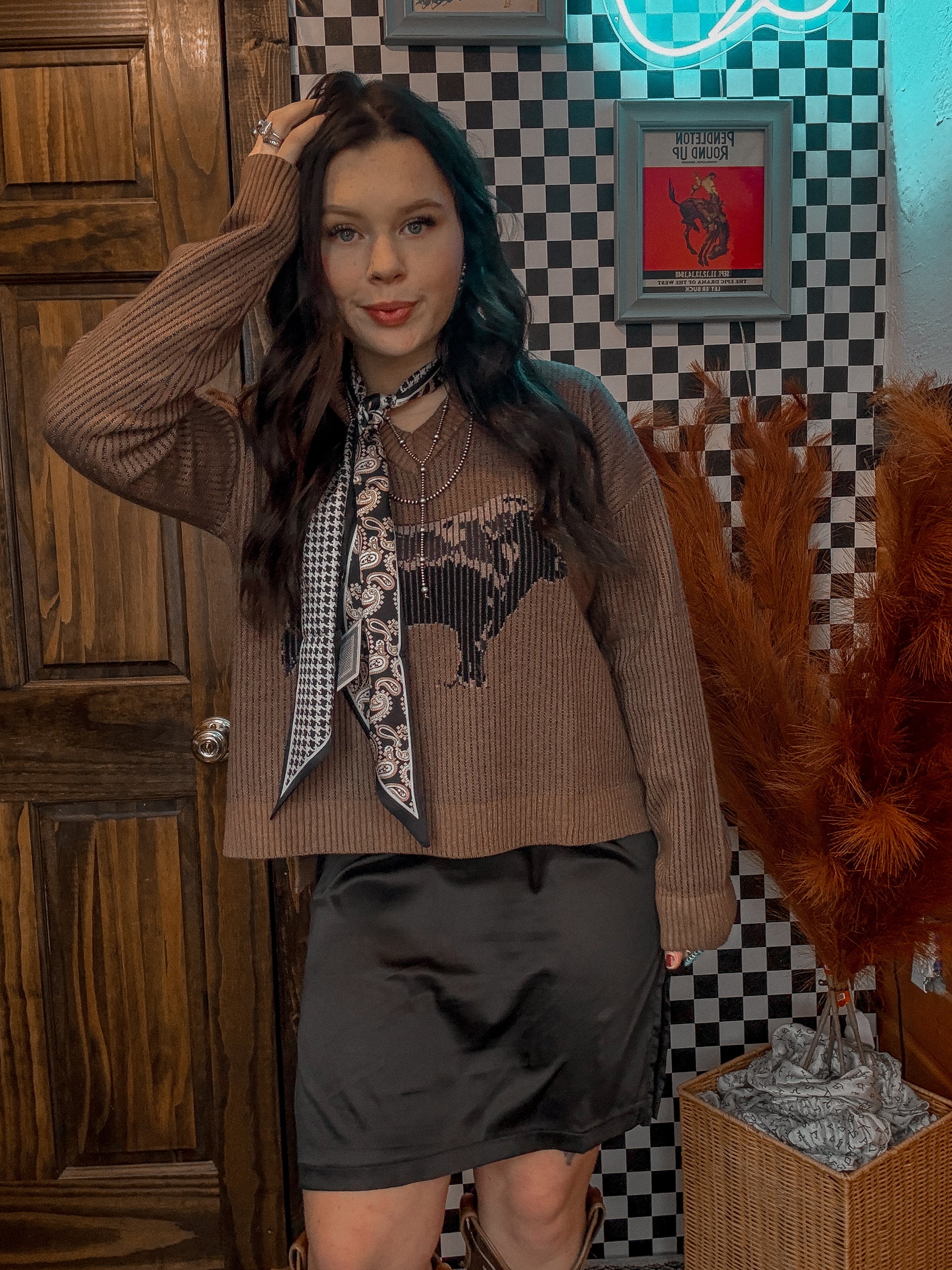 she's a v-neck style knit -- we HIGHLY ENCOURAGE a layer moment for her. same knit you all know and LOVEE but a tad more fitted. :)