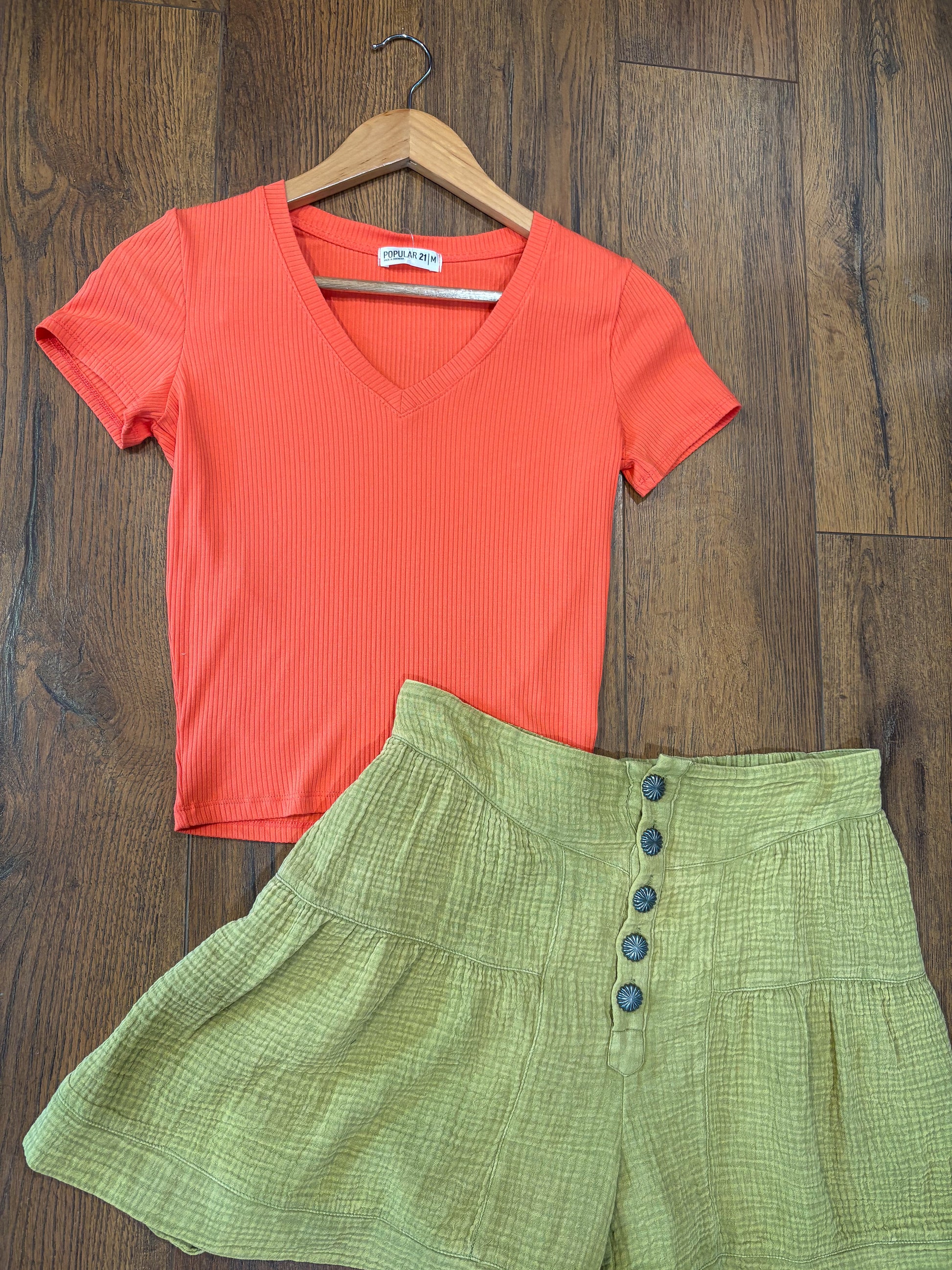 Basic Ribbed V Neck Tee *Pink Conch