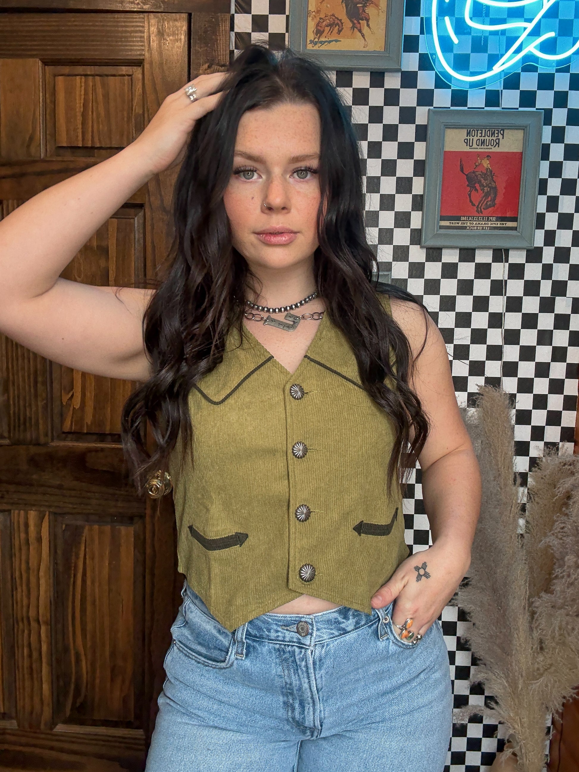corduroyyy vest + western vibes. vests are the move right now and we LOVE this trenddd. it's a super versatile piece.