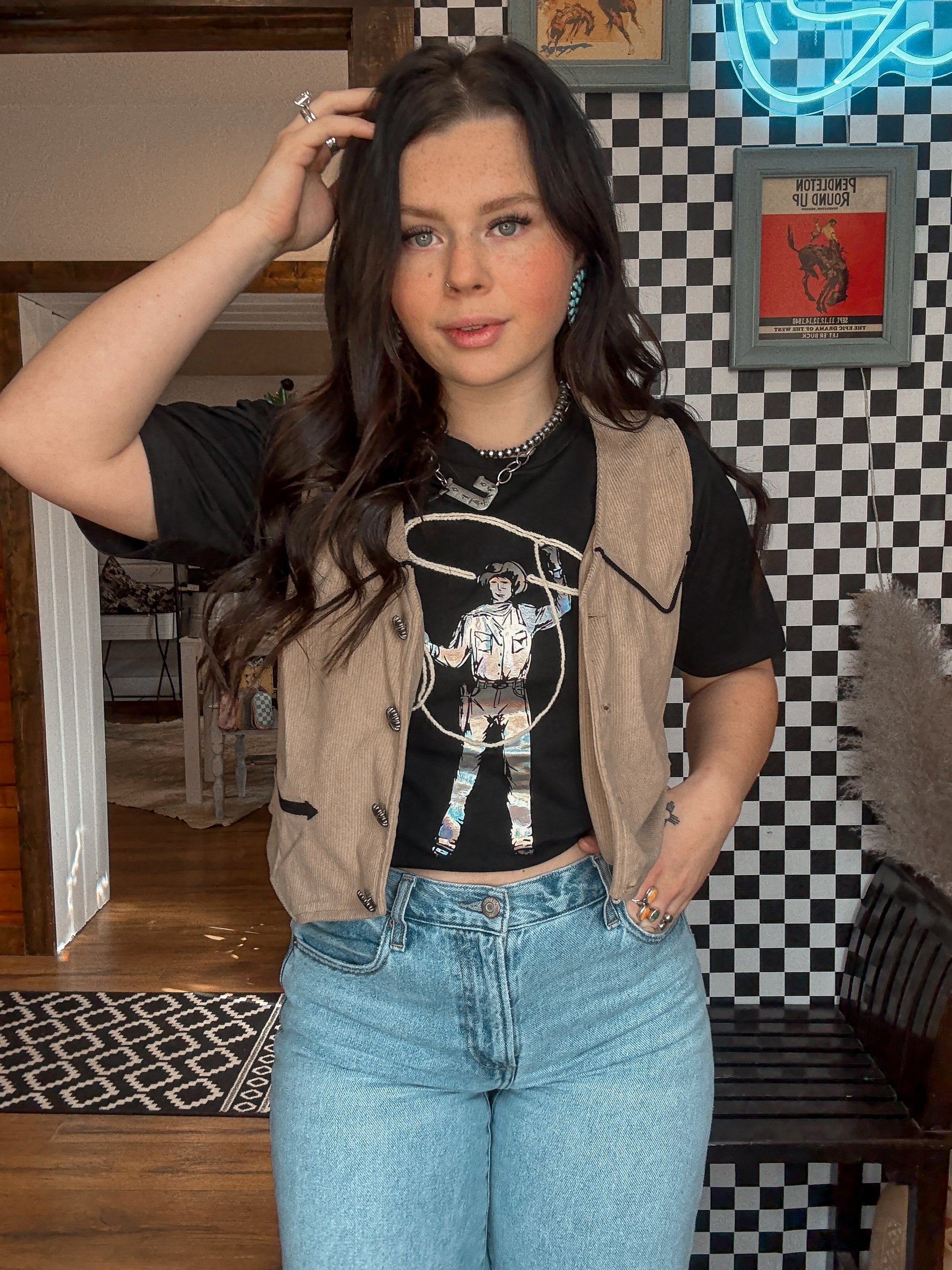 corduroyyy vest + western vibes. vests are the move right now and we LOVE this trenddd. it's a super versatile piece.