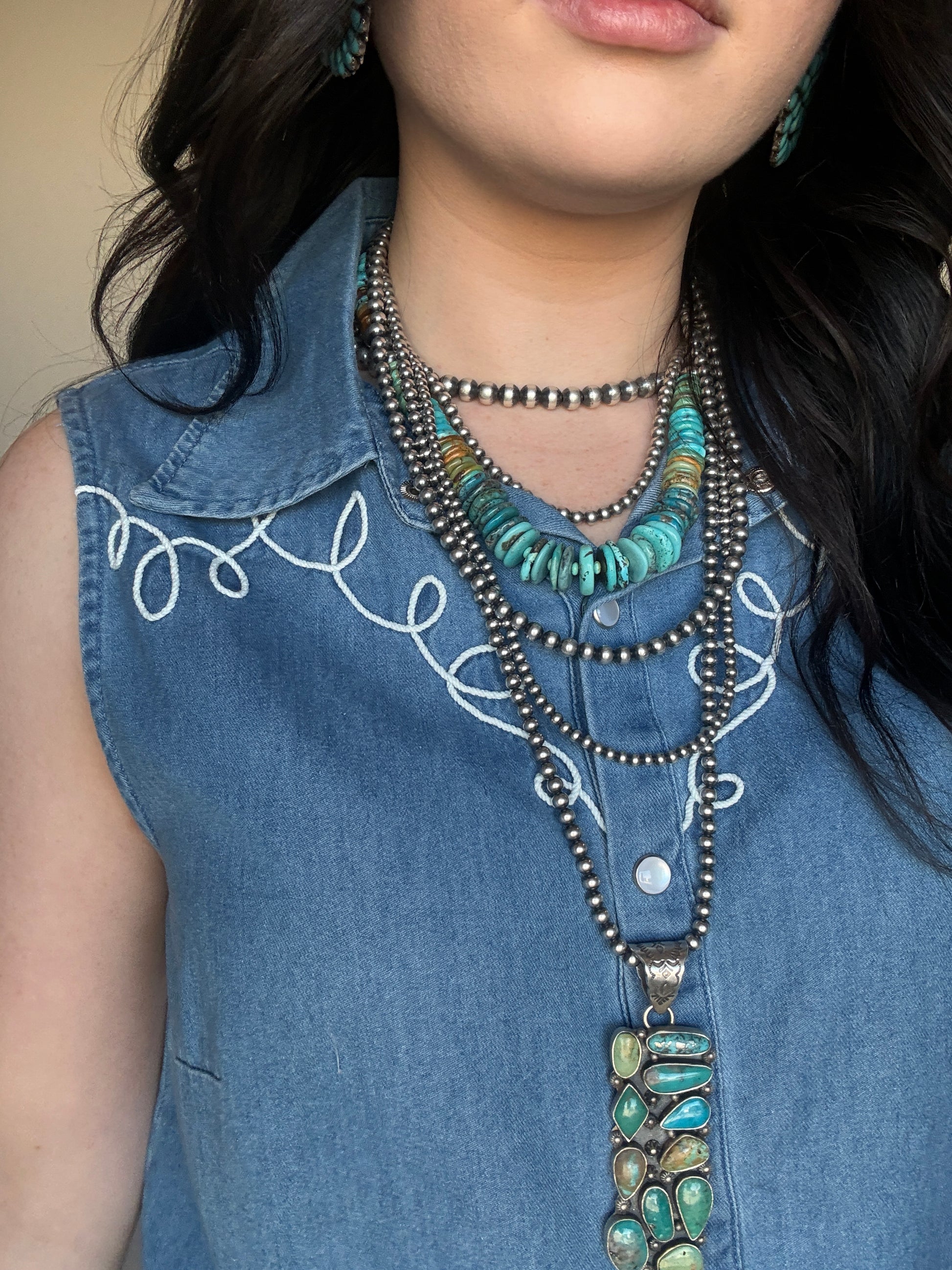 she's got loopty rope embroidery on the front and back. pearl snap goodness. style with a denim on denim look or make it your own.