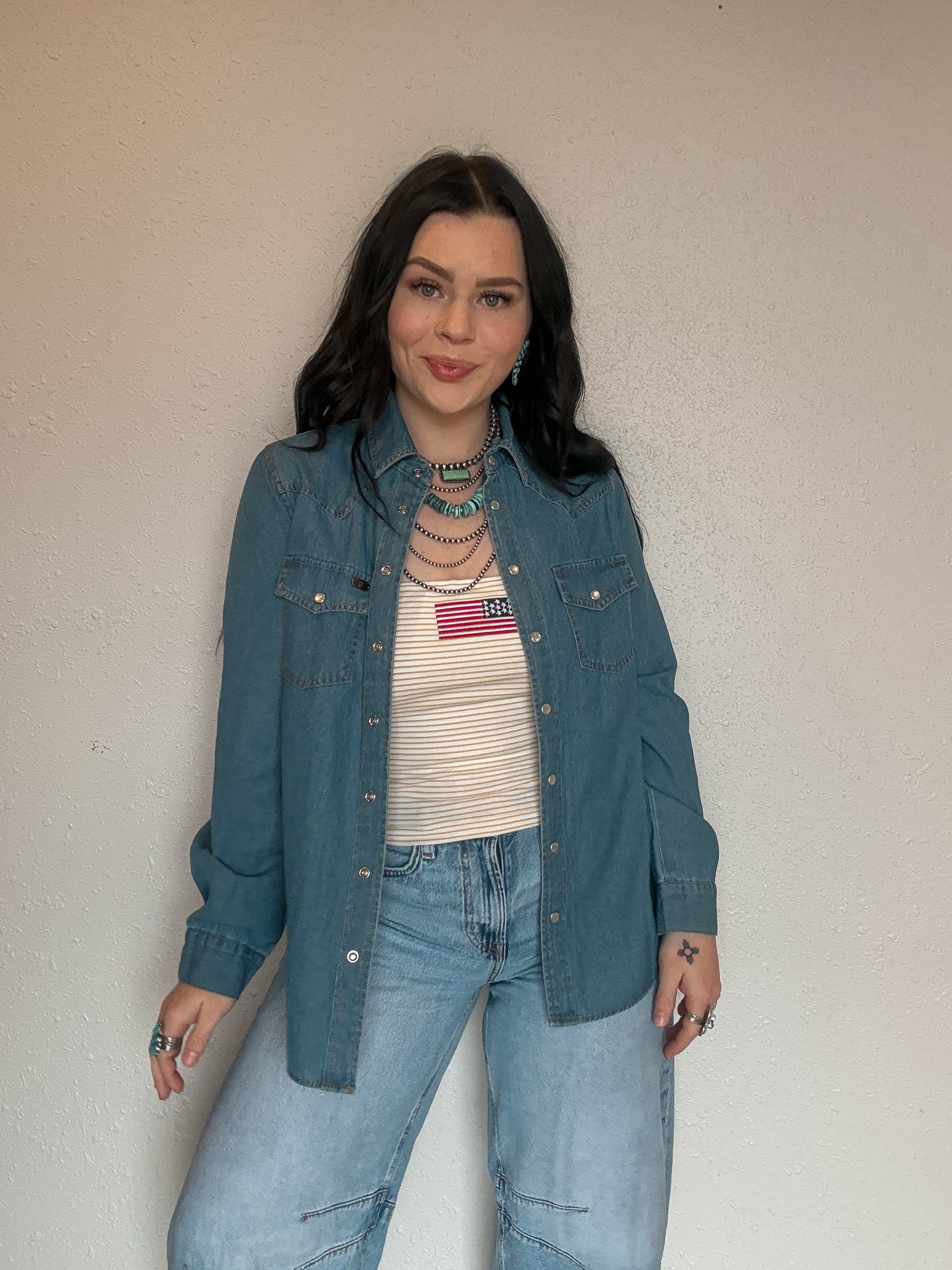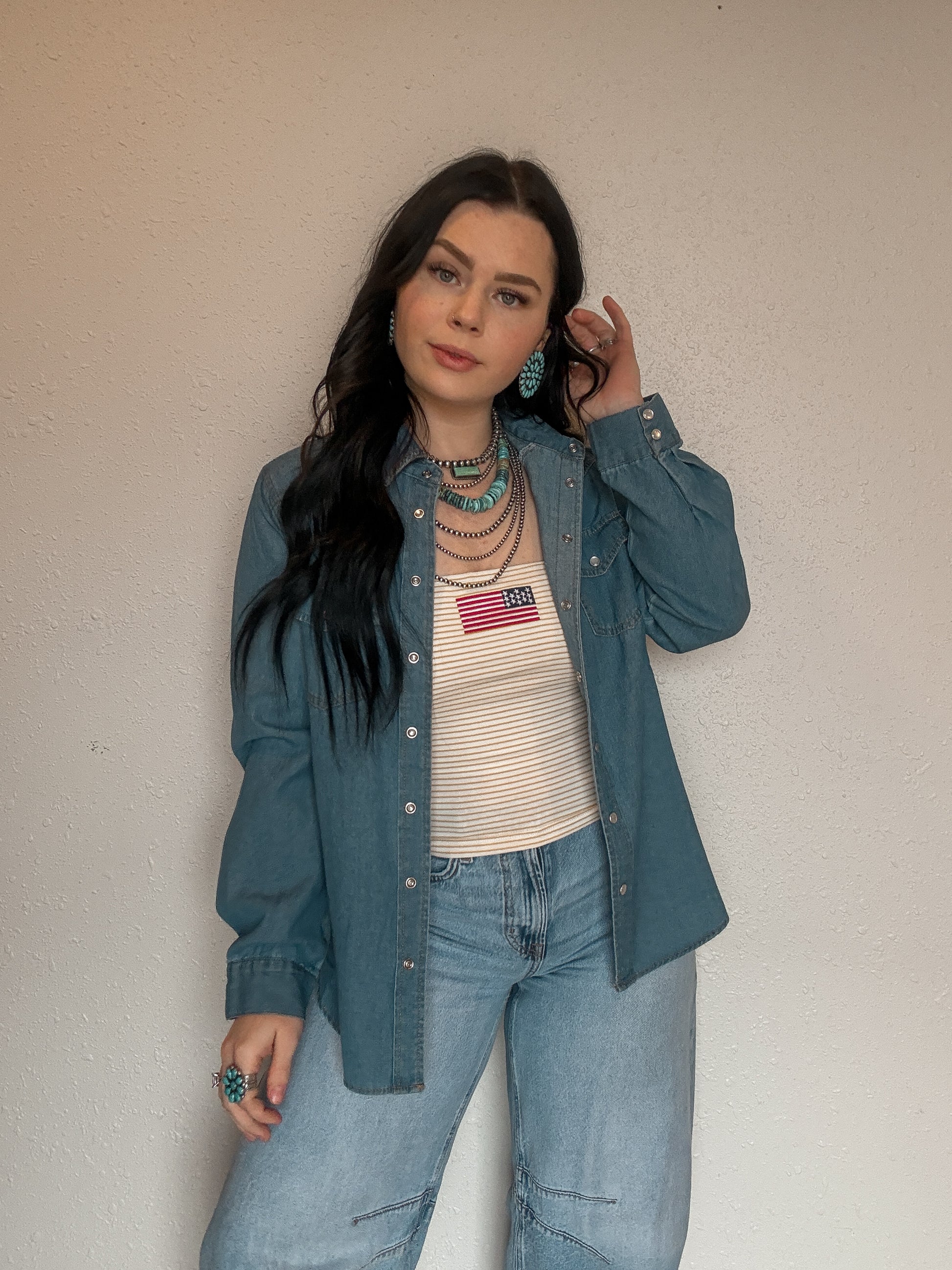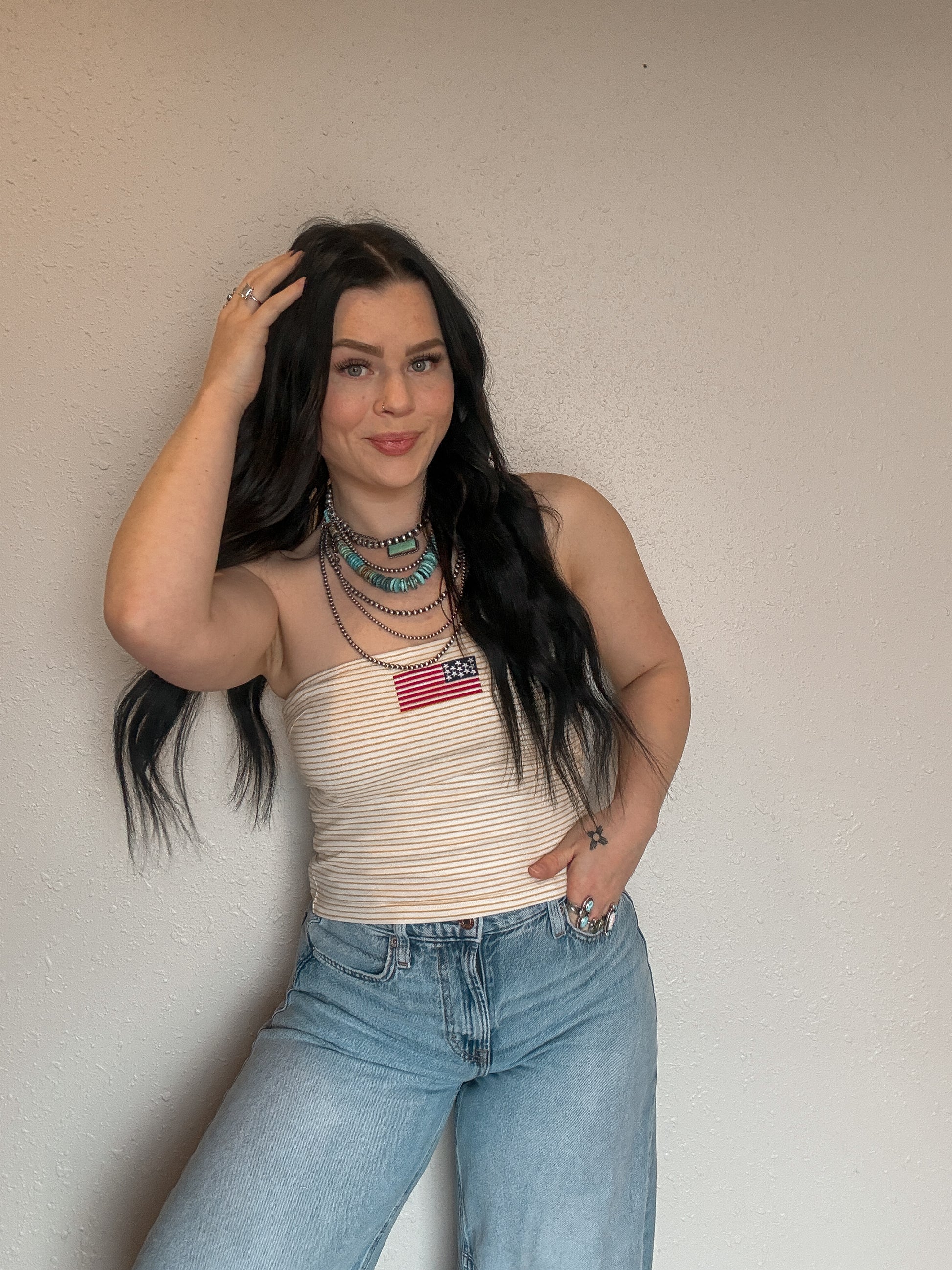 Pair the Stars and Stripes Tube Top with white shorts or denim for a fresh, all-American look.