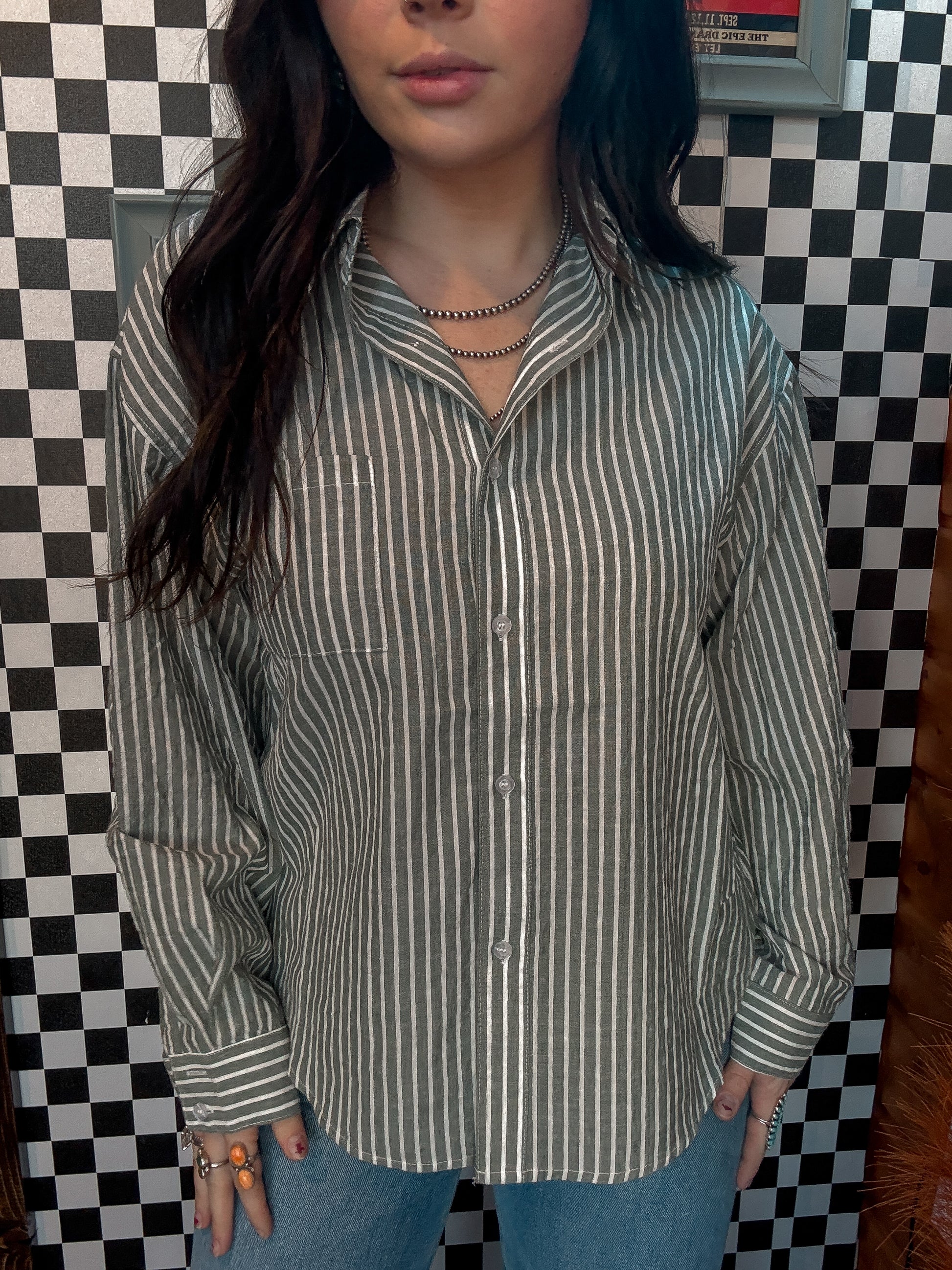 Green Stripe Button Down