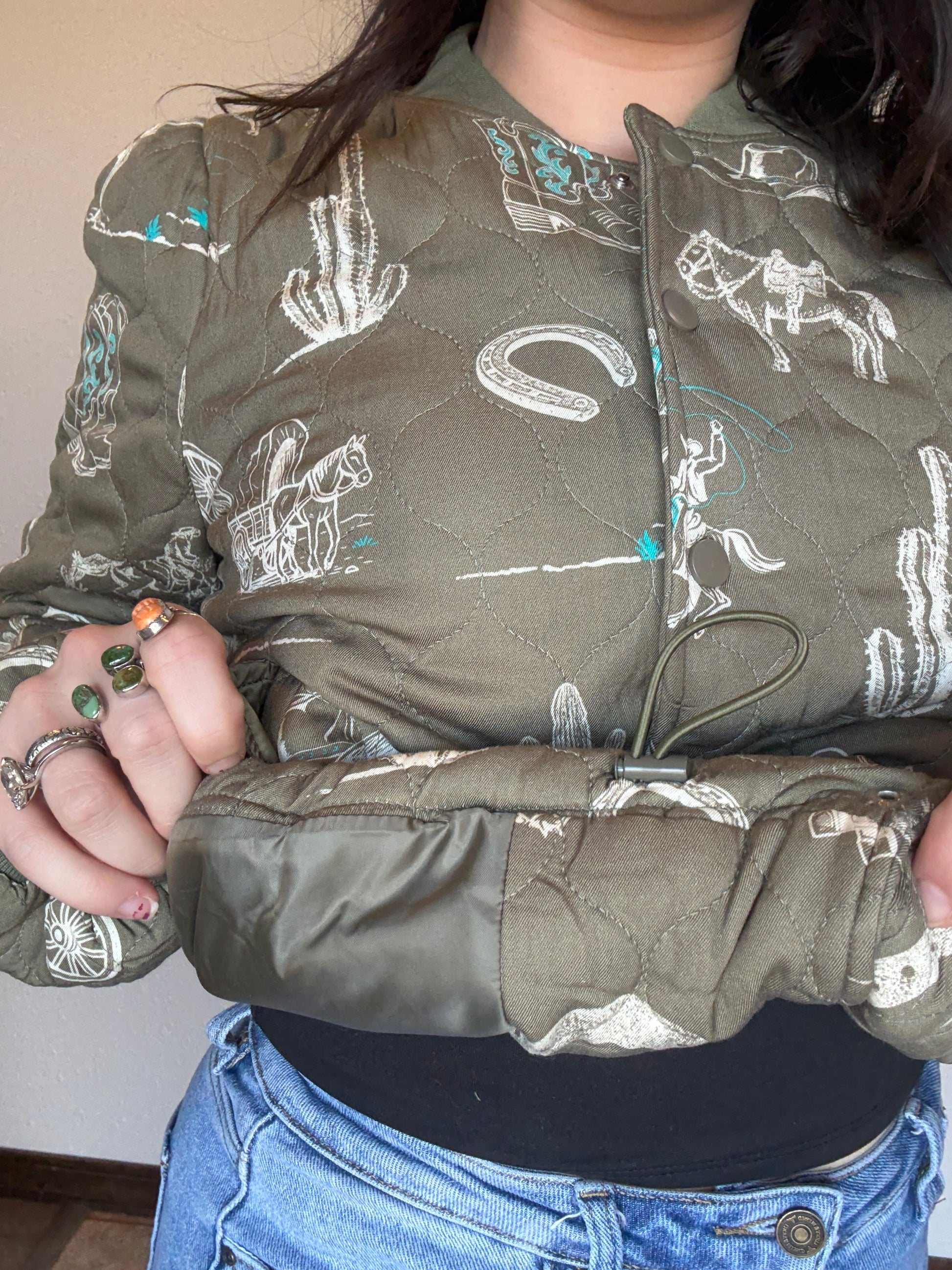It hits right at your waist, with cords to make the waist tighter or looser!