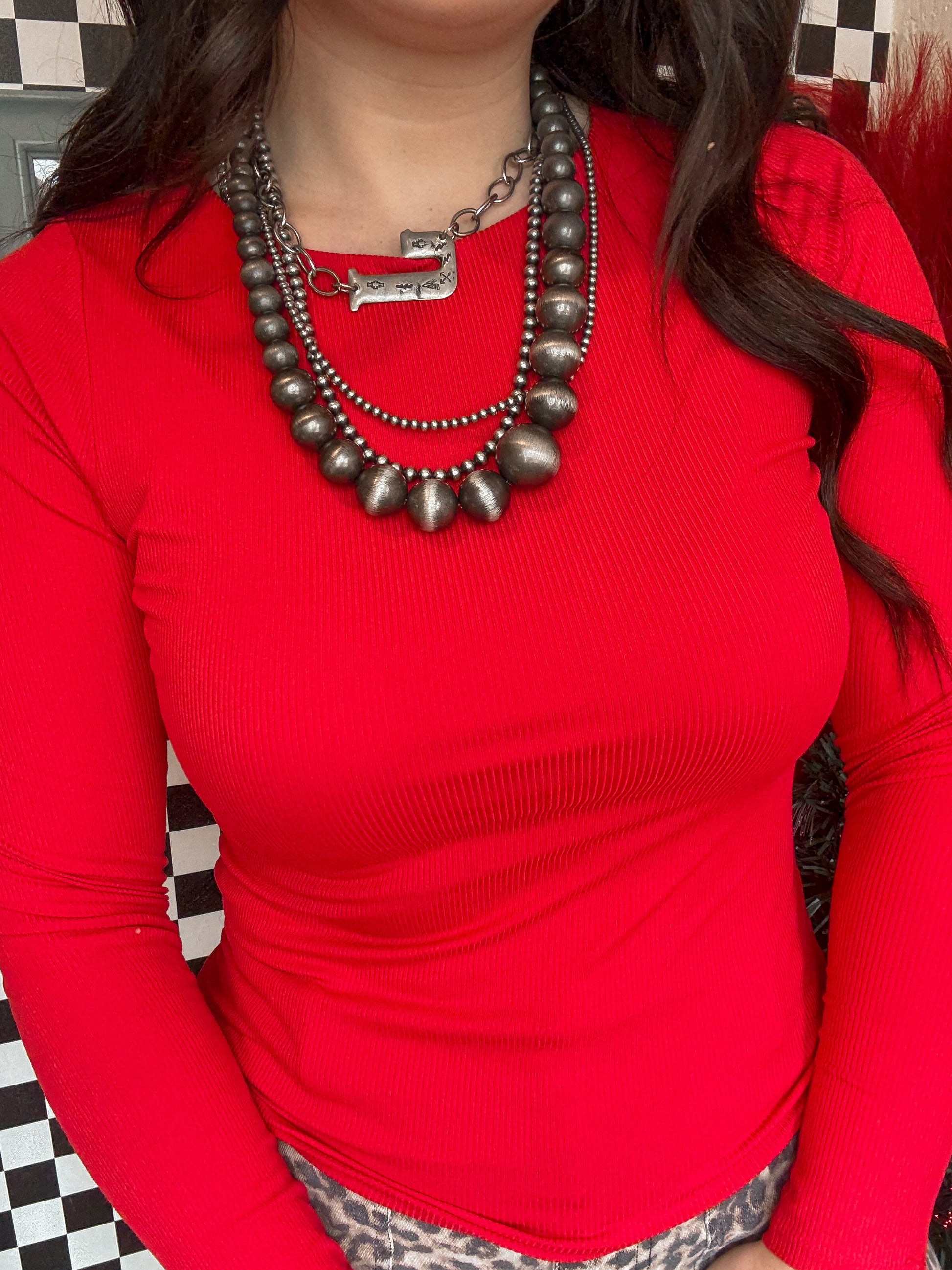 Red Long Sleeve Basic Ribbed