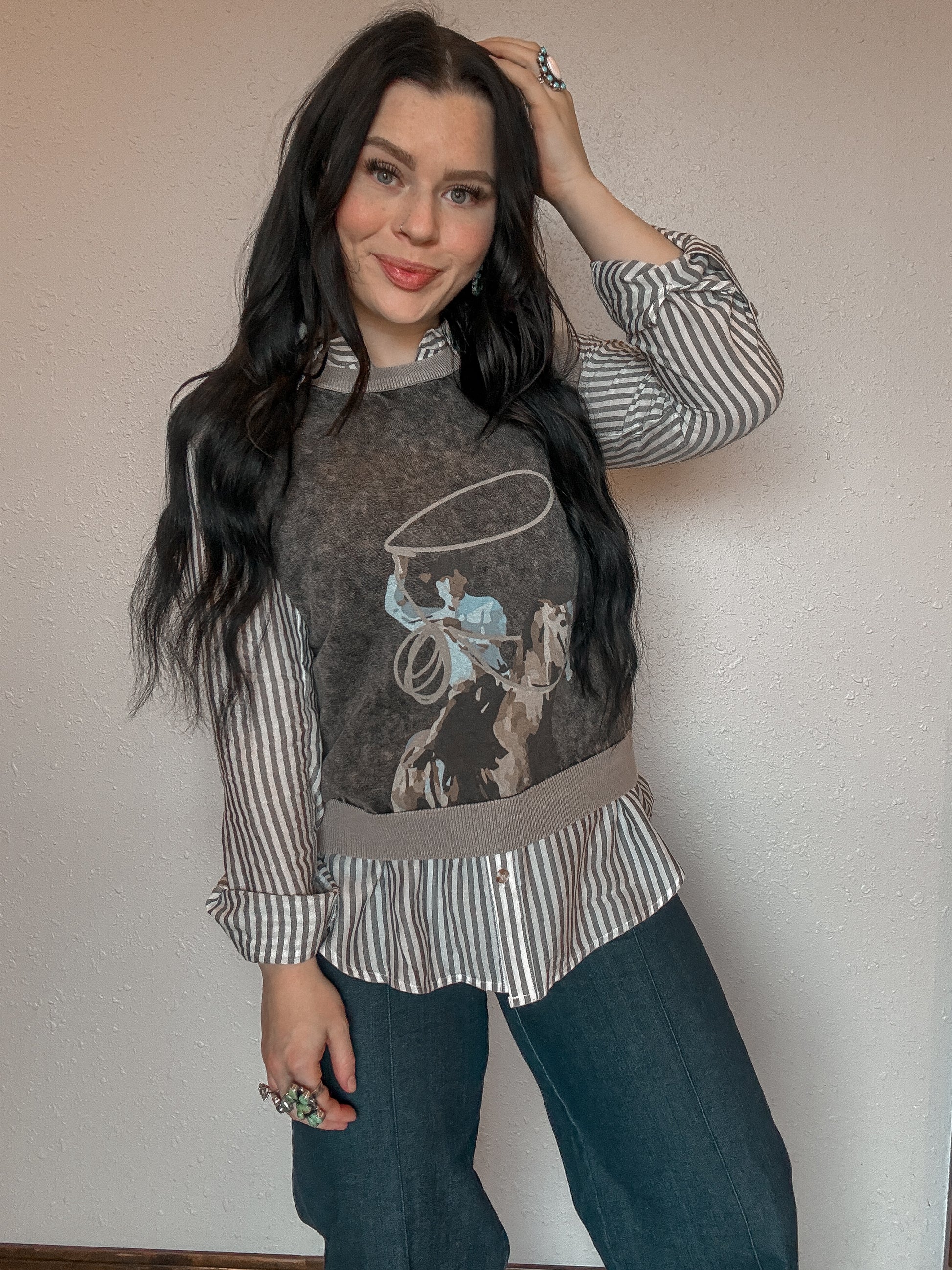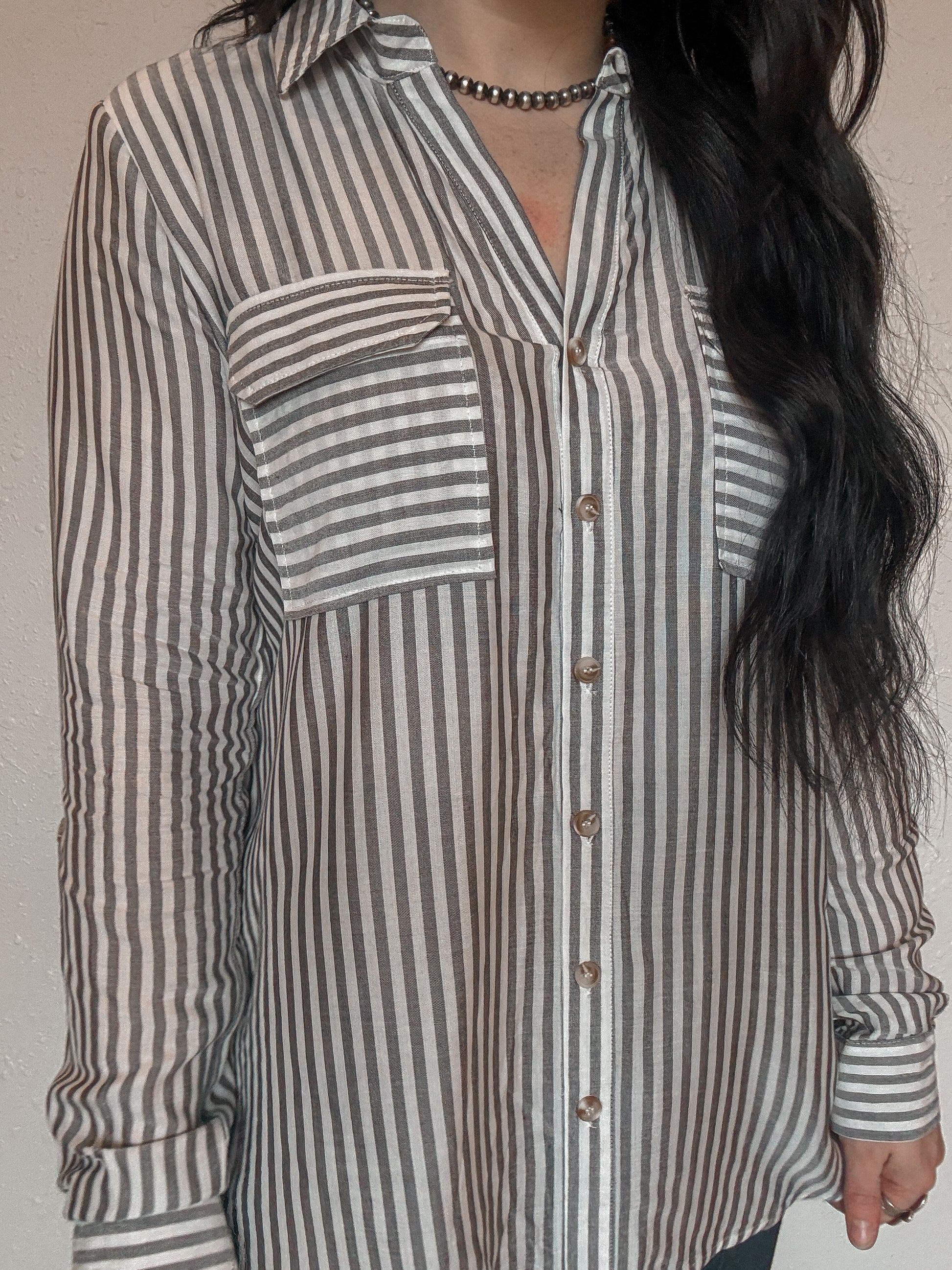 This lightweight striped button-up is one you’ll reach for all year long. Featuring a flattering high-low hem and versatile sleeves you can wear long or buttoned up. The breathable fabric makes it perfect for those in-between days, and it layers beautifully under your favorite sweater vest.