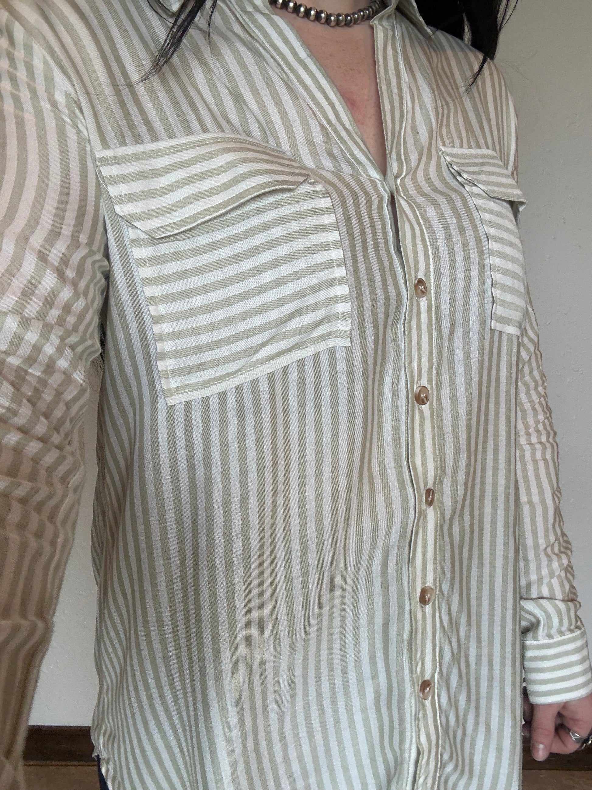 This lightweight striped button-up is one you’ll reach for all year long. Featuring a flattering high-low hem and versatile sleeves you can wear long or buttoned up. The breathable fabric makes it perfect for those in-between days, and it layers beautifully under your favorite sweater vest.